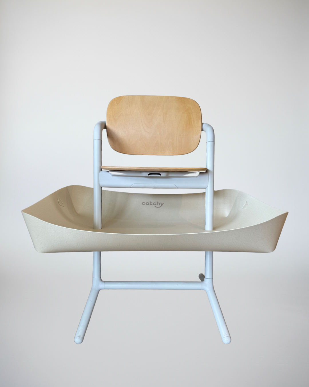 Catchy is an award-winning & patented food-catcher! Designed & backed by feeding experts, Catchy solves common parenting pain points - Constant cleaning, wasted food & stressful mealtimes!
