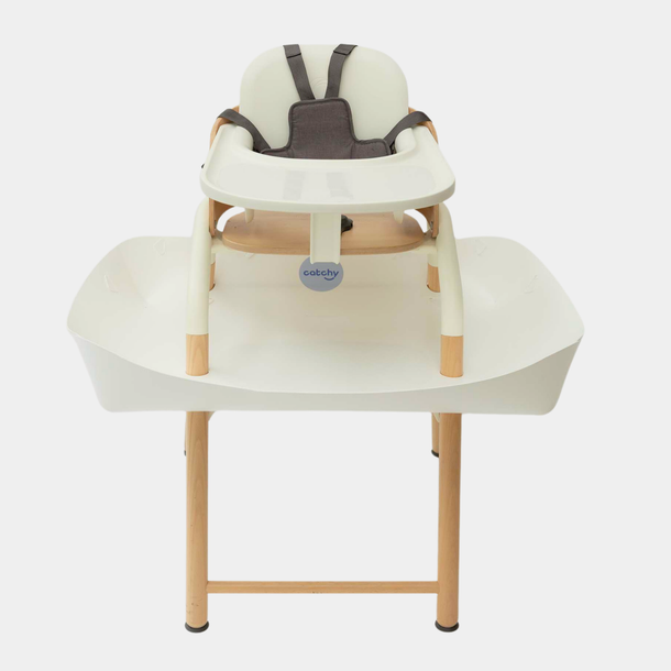 -Para quienes usan otras tronas sin reposapiés, Catchy también funciona como reposapiés para los peques cuyos pies llegan cómodamente a Catchy. Para los niños más pequeños cuyos pies aún no llegan a Catchy, los expertos recomiendan usar un reposapiés adicional para apoyarlos al comer.